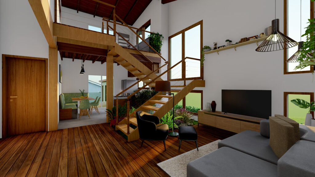 Projeto Biohabitate Casa Pé da Serra Conheça o Projeto 2024 | Minas Gerais – Projeto Biohabitate Uso Residencial – Área Construída 220m² Técnicas Pau-a-Pique Rebocos de Terra Tinta de Terra Telhado Verde Saneamento Ecológico Bioclimática Gostei do projeto