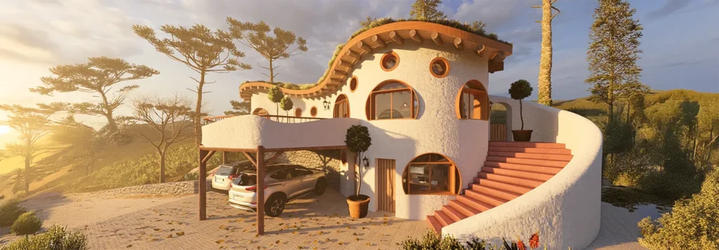Residência de Hiperadobe, Rebocos Naturais, Telhado Verde, Saneamento Ecológico | Área: 150m². | Santa Catarina | 2024